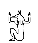 As the crossed arms are not visible in the glyph, the description in Unicode 17 has been adjusted to have "hands sticking out". The glyph is consistent with the reference from the Database, pl. XI, 5th column from the right in: